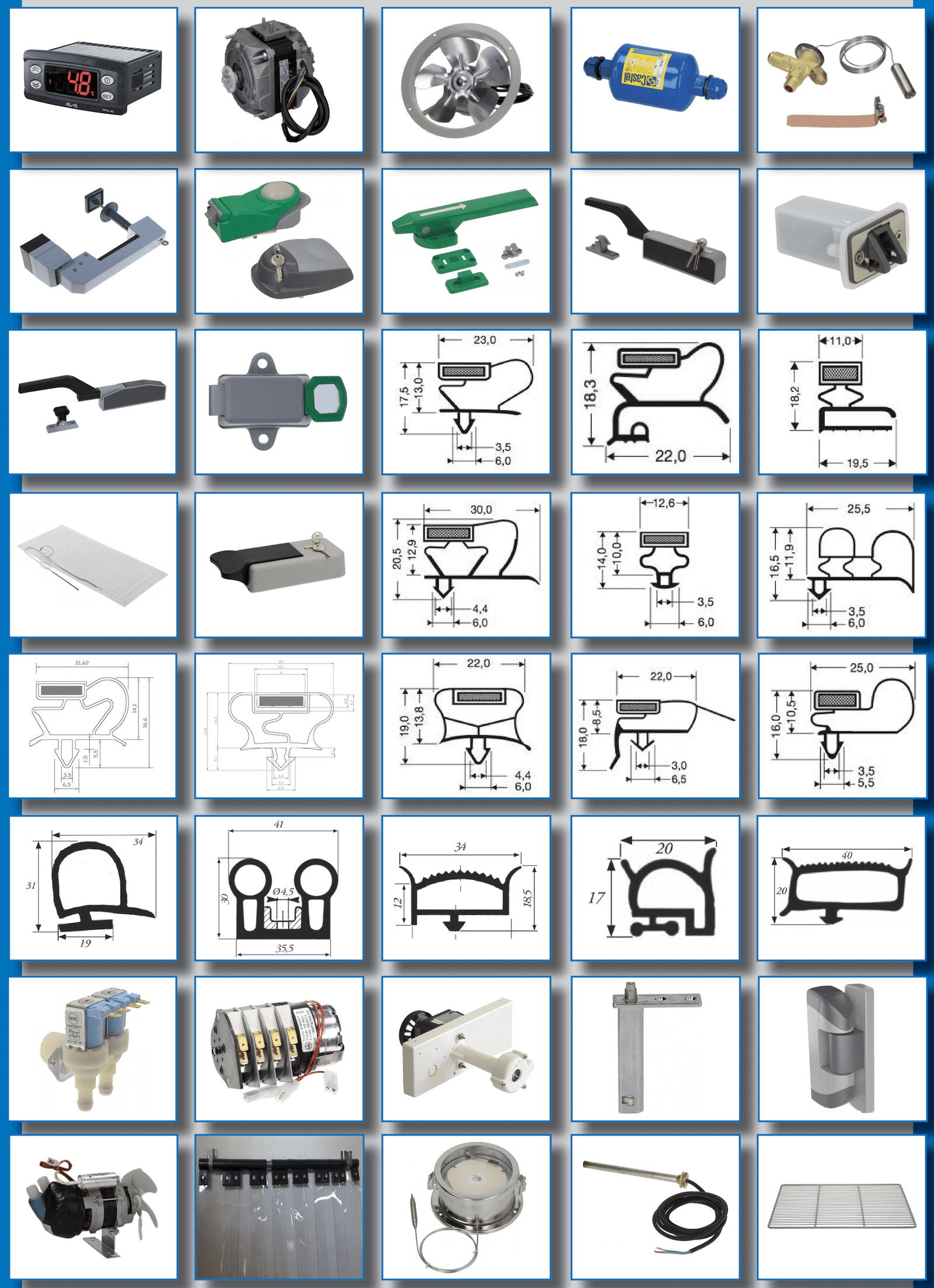 At the same time, Frigo Po offers an extensive spare parts catalog: mechanical and electrical components such as hinges, handles, thermometers, sensors, lamps, compressors, fans, temperature recorders, data loggers, and even parts for ice makers. The product range is broad and continuously updated, with goods ready in stock and express shipping — often within 24 hours of order confirmation.