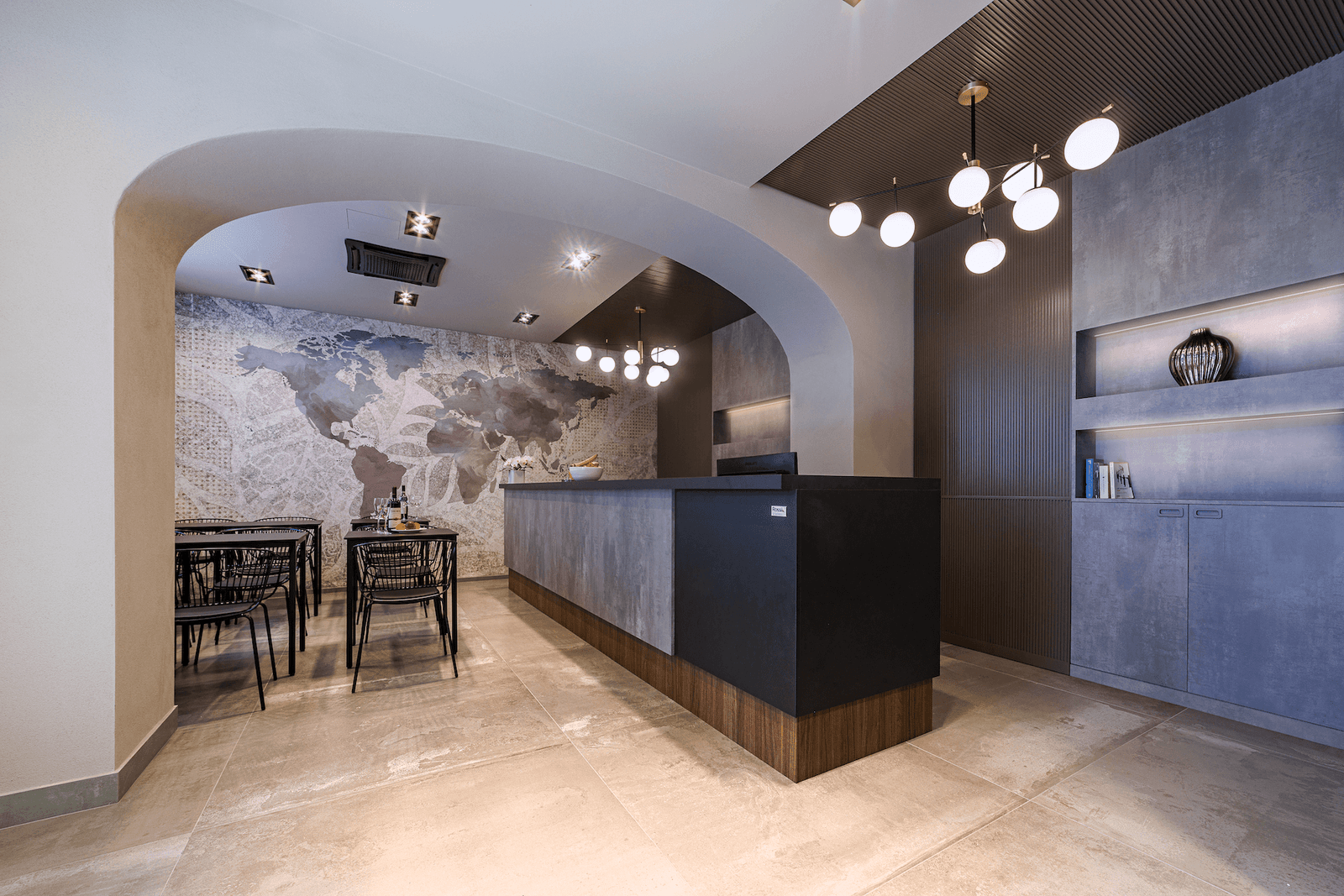 The architectural design, commissioned by Rossi & Partners, who also manufactured all the bespoke furnishings, was developed by architect Luca Podrini of Pesaro. The result is a sober yet refined environment, with meticulous attention to detail in every corner.