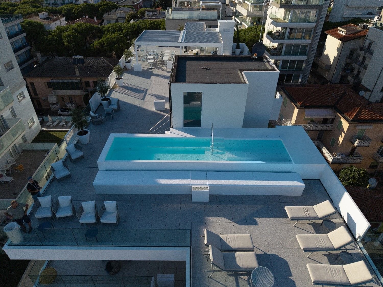 The Jesolo pool is not just an extra service for a prestigious hotel, but a symbol of Preformati Ita­lia’s innovative approach: making possible what once seemed unattainable, blending technique and creativity to write new chapters in the world of hospitality and wellness.