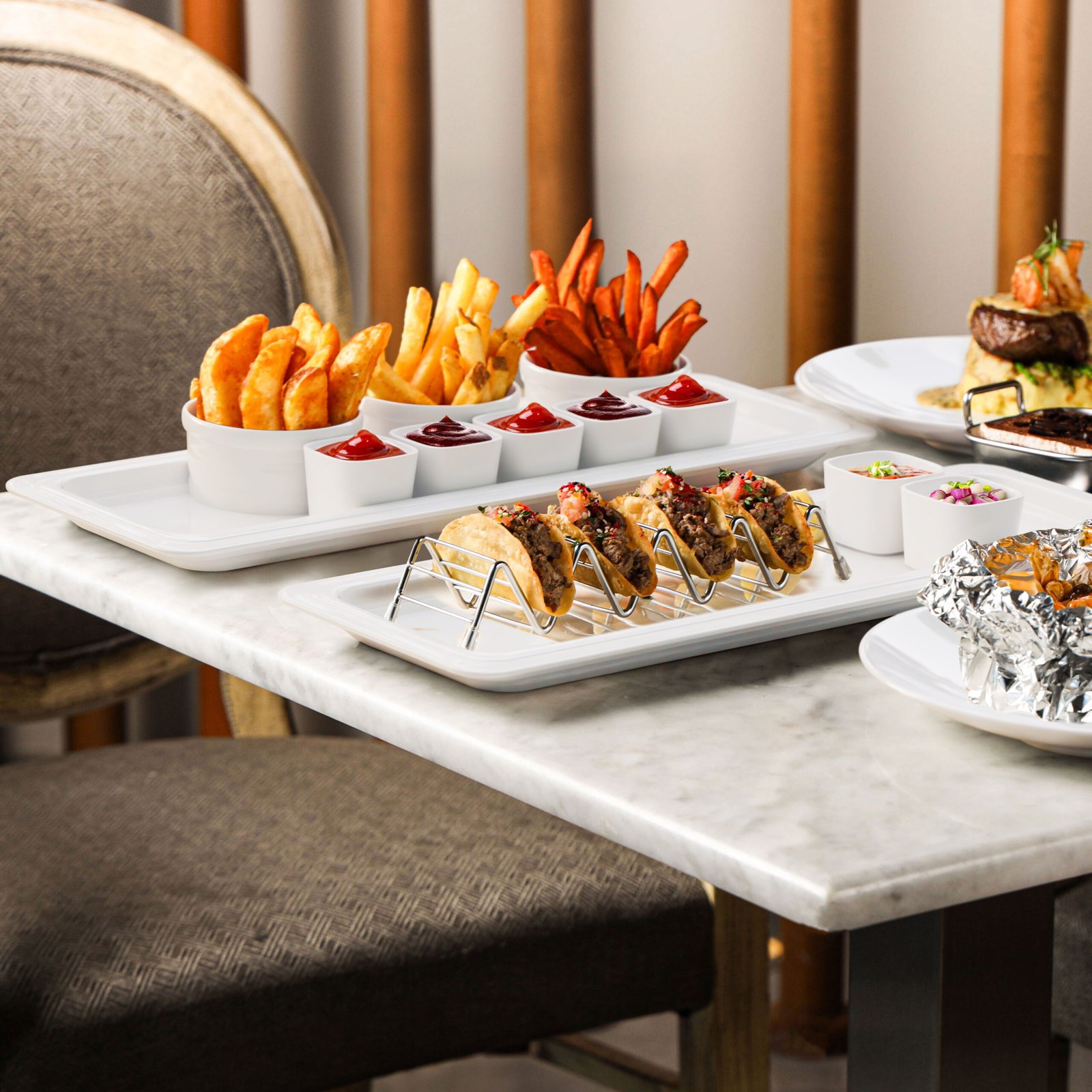 It is the sound of time suspended. The Vassoi line marks the rhythm with absolute clarity. From kitchen to table, the voice of quality emerges through the purity of feldspar, quartz and Limoges kaolin, blended to withstand daily service without losing grace.